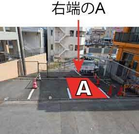 オレンジ色のマンションの隣の駐車場の「A」です。